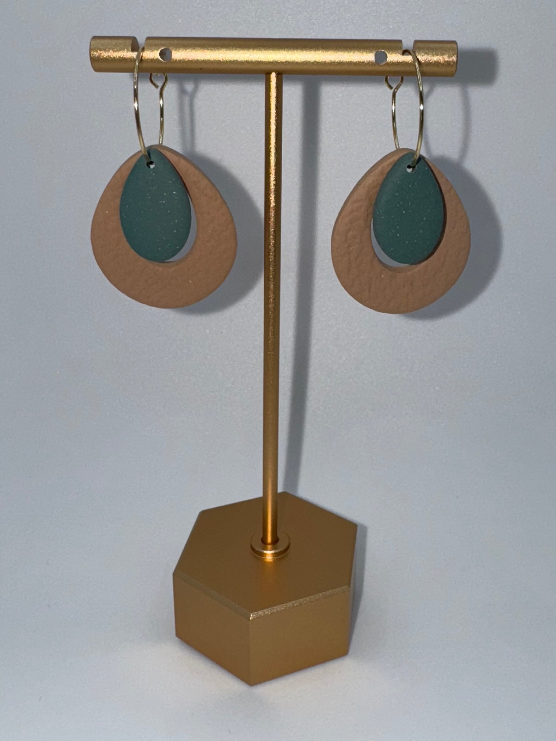 Cozy tones, crisp air, and a touch of woodland charm. Autumn Glen earrings blend warm faux leather caramel with deep forest green, making them your go-to fall statement piece. Lightweight, earthy, and endlessly versatile - just like your favorite fall days. Measuring approximately 1.50" in length made with 14K gold plated 20mm hoops.