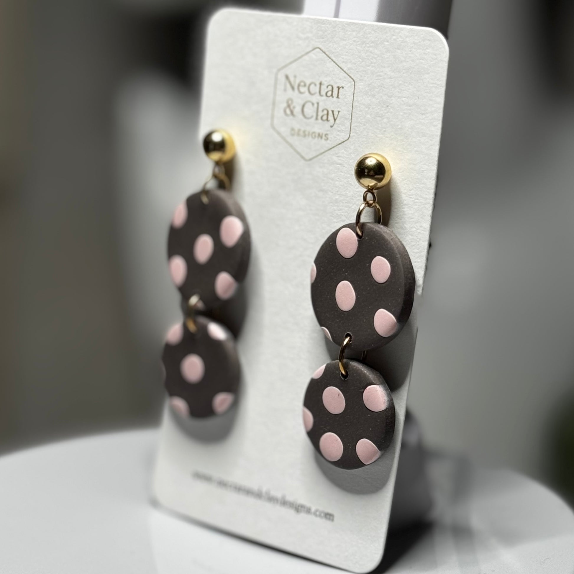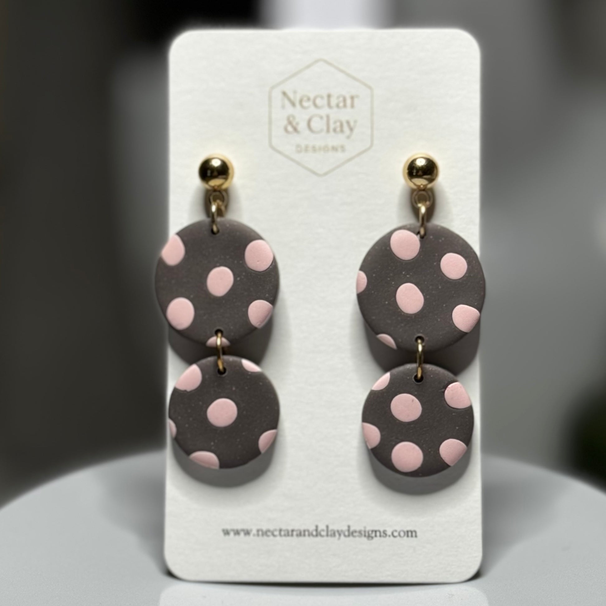 Warm and feminine, Cocoa Rose pairs a rich cocoa-toned base with soft blush dots for a look that feels cozy yet sophisticated. The gentle contrast creates a subtle statement, making these earrings a beautiful choice for neutral lovers who still want a hint of romance. Elegant gold (nickel-free) hardware completes the design with a luxe finish.