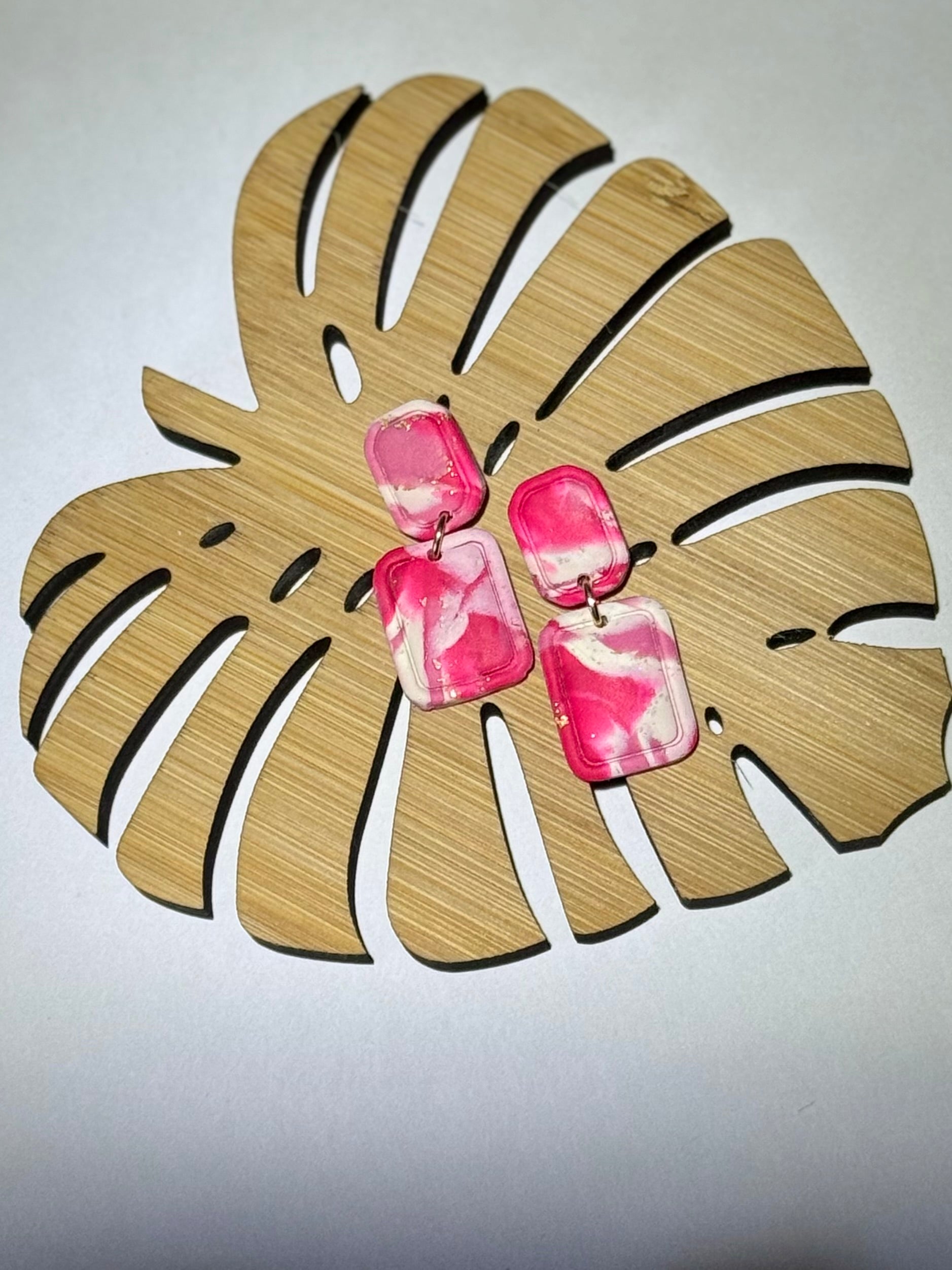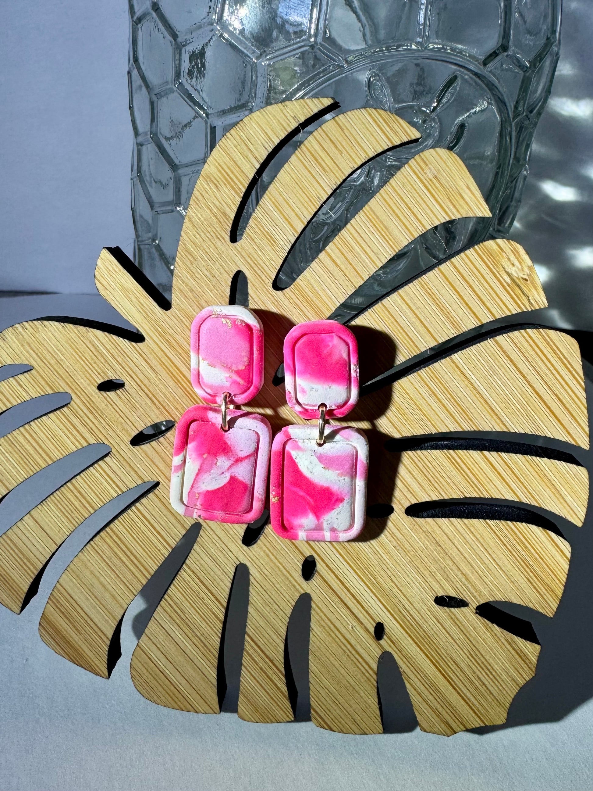 Sweet and delightful, just like the name suggests, these "Strawberries & Cream" earrings capture the essence of a beloved summer dessert. Imagine luscious red strawberries paired with a swirl of creamy white, all brought to life in a wearable form. Their vibrant colors and playful design will add a touch of sweetness to any look, perfect for those who love unique, handcrafted jewelry and a touch of whimsy. Handcrafted in small batches allows for each set to offer it's own one of a kind look and design. Embrace the red, white, and pink swirls with gold foil accents and 14K gold plated studs!